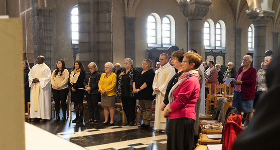 Tri - Nathaly - Caty - Véronique - abbé Félix - abbé Francis - Dominique - Anne - Rosa-Maria ( non présent sur la photo : Chantal et Marie-Rose ) et Patrick notre nouveau vicaire nous a rejoint en mars 2024.